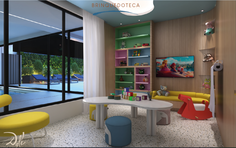 PLAYGROUND, LOUNGE SALÃO DE FESTAS, ESPAÇO GOURMET, ACADEMIA, BRINQUEDOTECA, PISCINA COBERTA, LOUNGE PISCINA.
