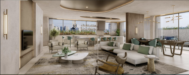 TEMOS PRAÇA LANGE TURIN, PORTE COCHÉRE, HALL DE ACESSO, LOBBY, ESCADA ESCULTÓRICA, LOUNGE GOURMET CLUB, LOUNGE GOURMET EXTERNO, FITNESS CENTER, SPA BOUTIQUE, BEAUTY SPACE, SALA DE MASSAGEM, SAUNA, SOLARIUM PISCINA, PISCINA, HIDROMASSAGEM, POOL BAR, PRAÇA PET FRIENDY, COWORKING, LAVANDERIA.