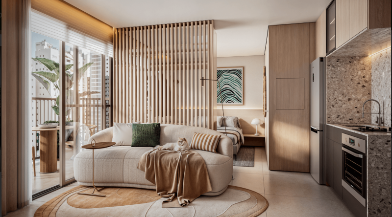COM ÁREAS COMUNS COMPLETA PARA O SEU BEM ESTAR, SOLLARIUM, FIRE PIT, ESPAÇO GOURMET COM AR CNDICIONADO, ESPAÇO GOURMET EXTERNO, FITNESS COM AR CONDICIONADO, PISCINA, SAUNA, LAUNDRY, LOBBY, MINI MARKET, LAUNGE, PET SQUARE.